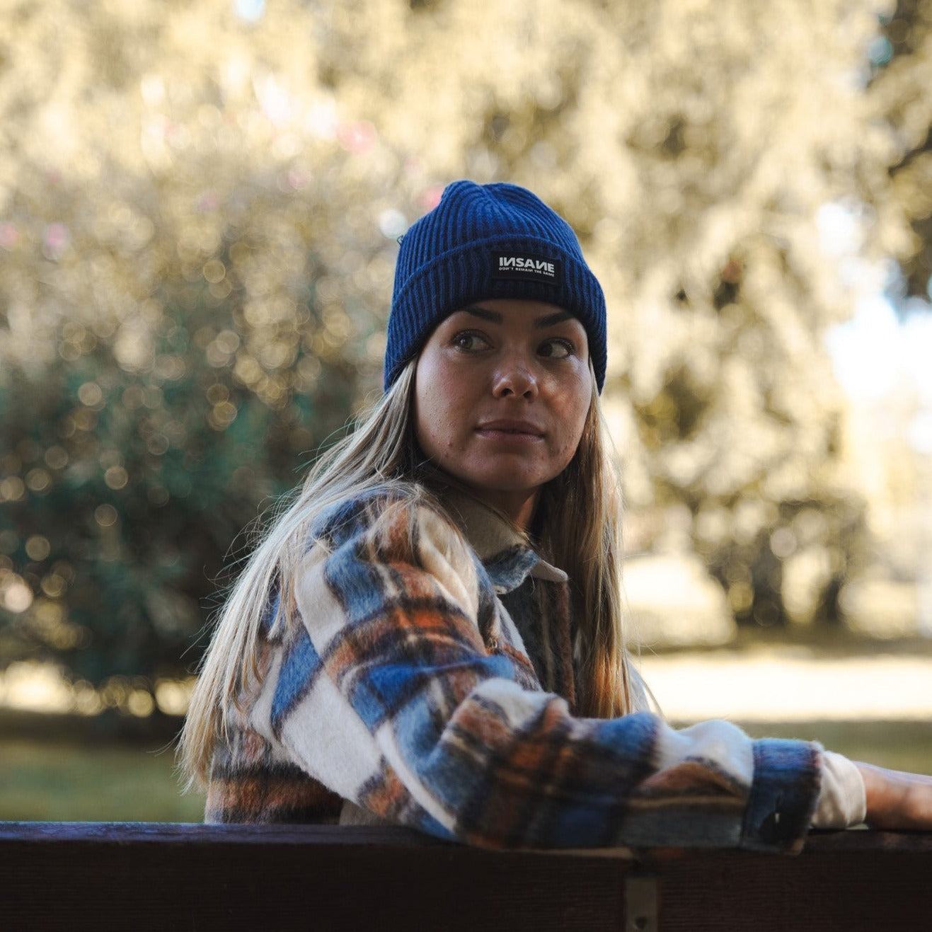 INSANE® Beanie made of eco-efficient recycled fiber that reduces environmental impact and enhances fabric performance, making it warm, comfortable, and sustainable.