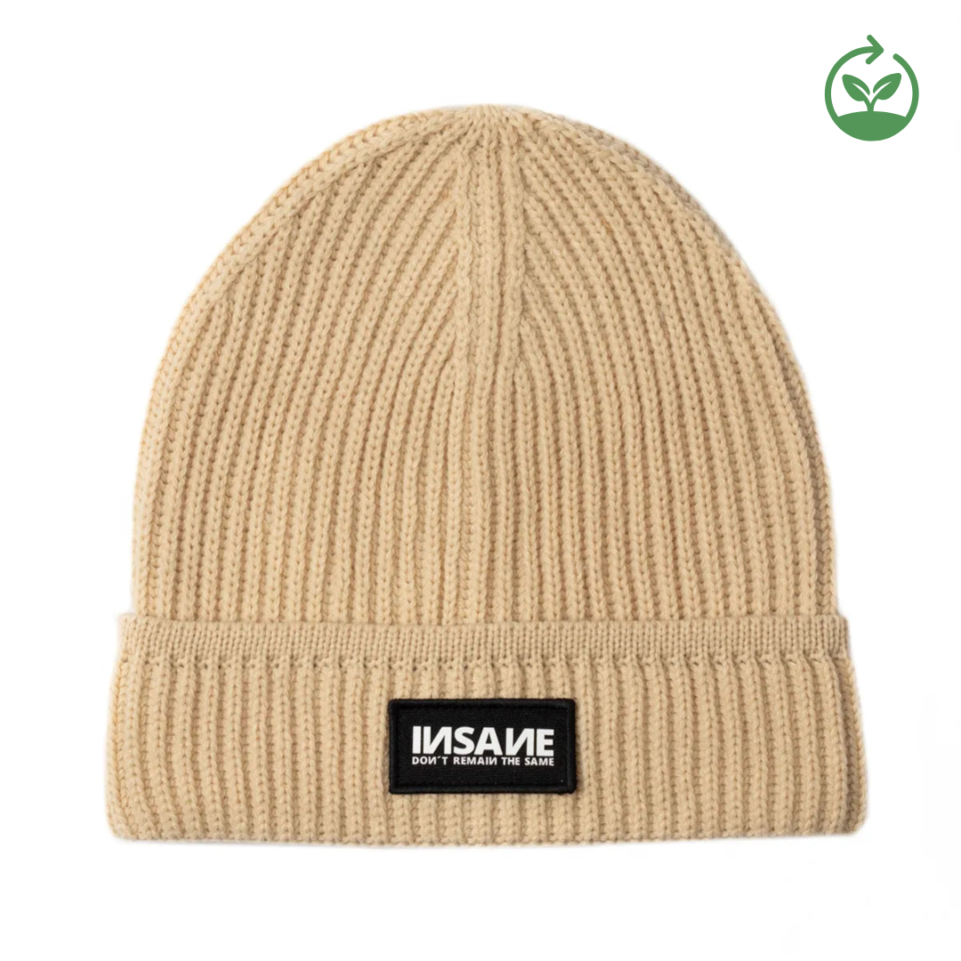 INSANE® Beanie made of eco-efficient recycled fiber that reduces environmental impact and enhances fabric performance, making it warm, comfortable, and sustainable.