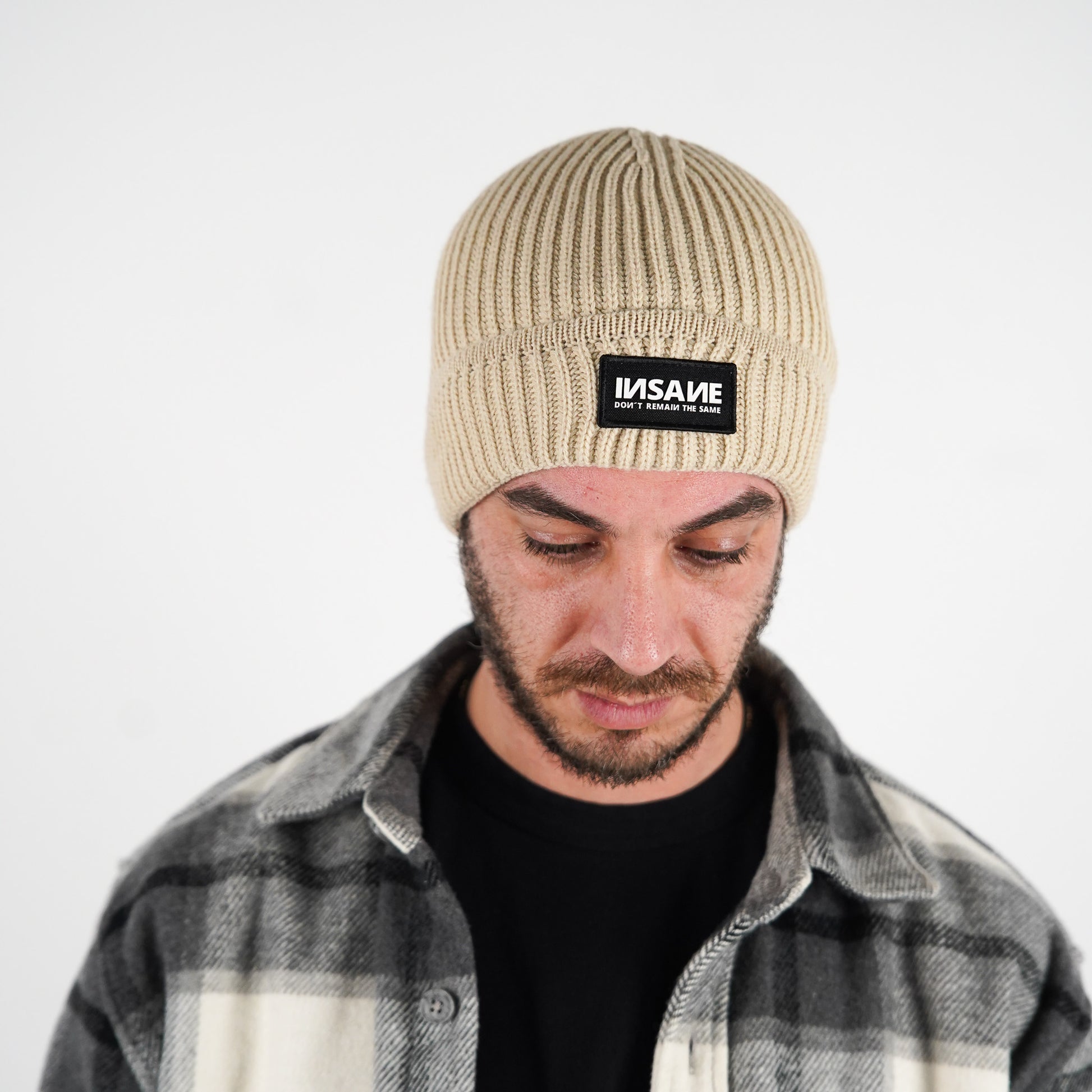 BEANIE BEIGE LABEL PATCH INSANE