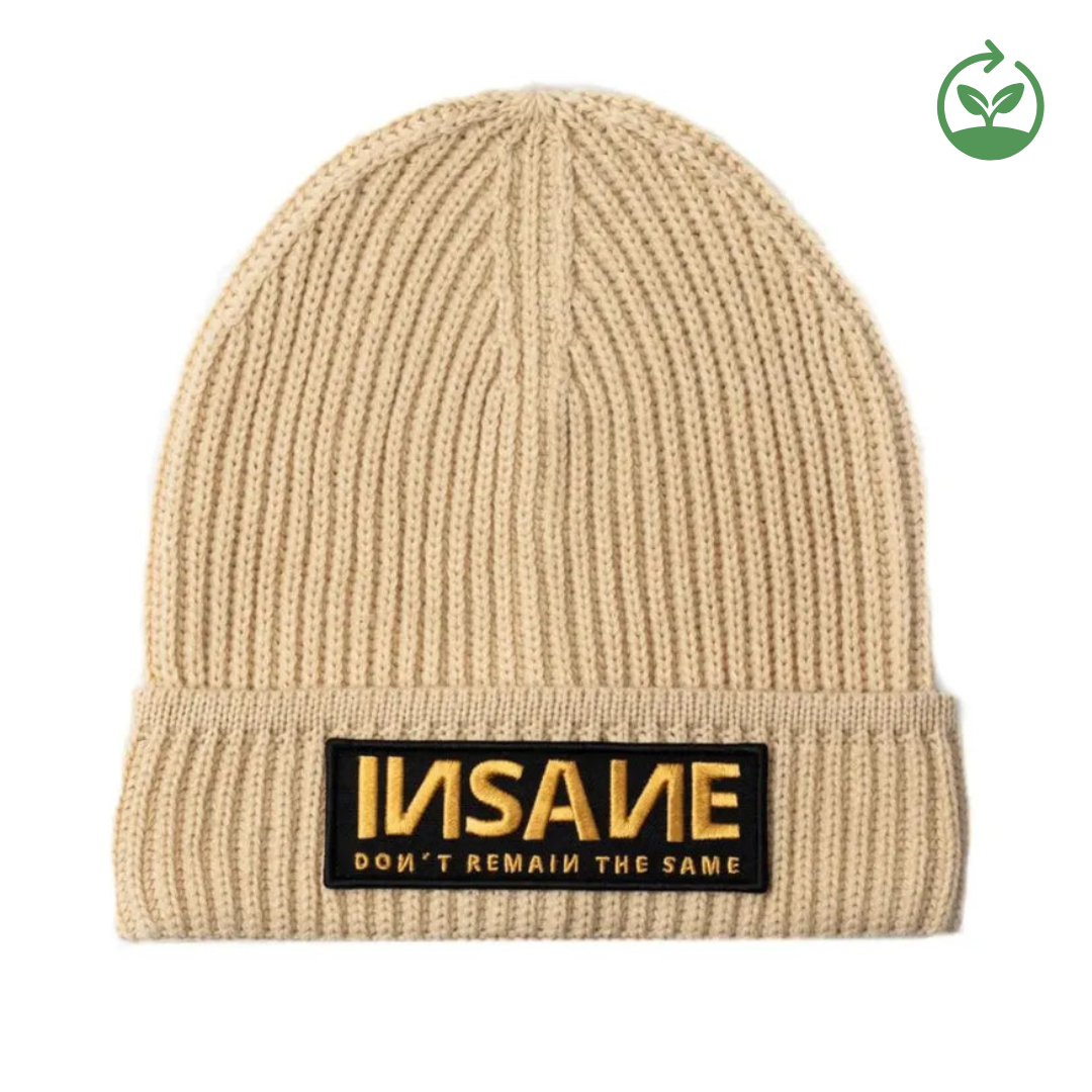 INSANE® Beanie made of eco-efficient recycled fiber that reduces environmental impact and enhances fabric performance, making it warm, comfortable, and sustainable.