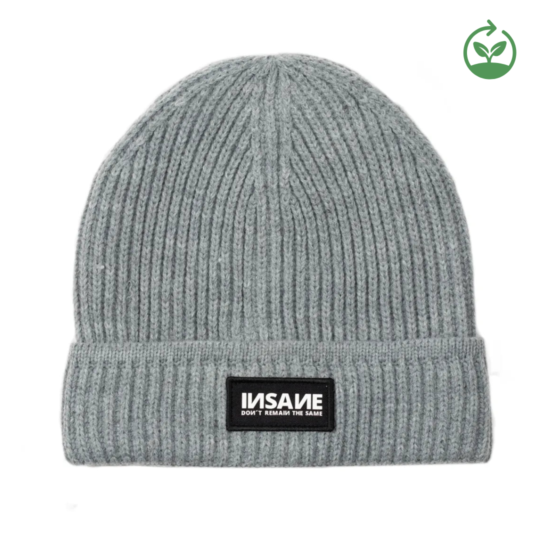 INSANE® Beanie made of eco-efficient recycled fiber that reduces environmental impact and enhances fabric performance, making it warm, comfortable, and sustainable.
