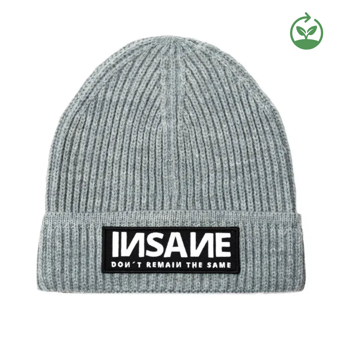 INSANE® Beanie made of eco-efficient recycled fiber that reduces environmental impact and enhances fabric performance, making it warm, comfortable, and sustainable.